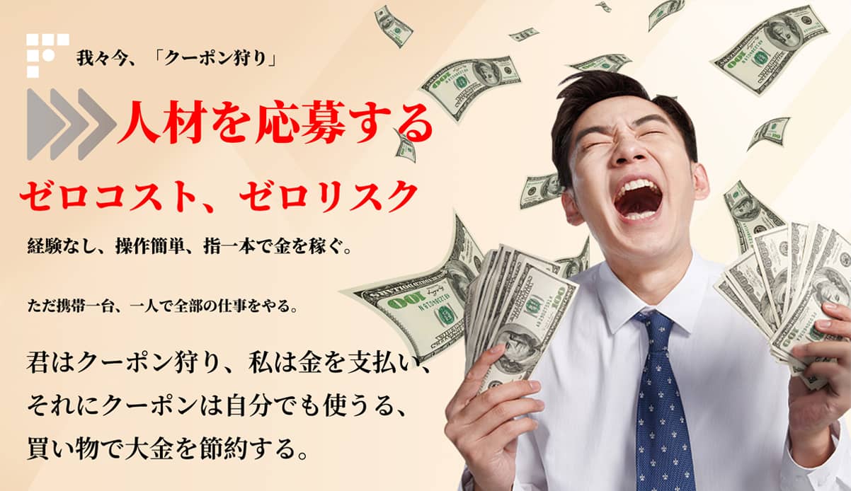 私たちはクーポン狩りの副業を募集している会社です。毎日5分間だけ、私たちのLINEグループでクーポンリンクをクリックして購入していただければ、コミッションを獲得できます。主婦の方、在宅勤務の方、会社員などに適しています。……一部のクーポンには時間や数量の制限がありますので、もっと稼ぎたいなら、スマホ1台と安定したネット環境さえあれば可能です。リンクによってコミッション額は異なりますので、自分の気になるコミッション価格を選んでクリックして争奪してください。全過程でいかなる費用や保証金を支払う必要はなく、操作は簡単で、興味のある方は私たちのLINEに追加して詳細をご確認ください。初回参加時にはお